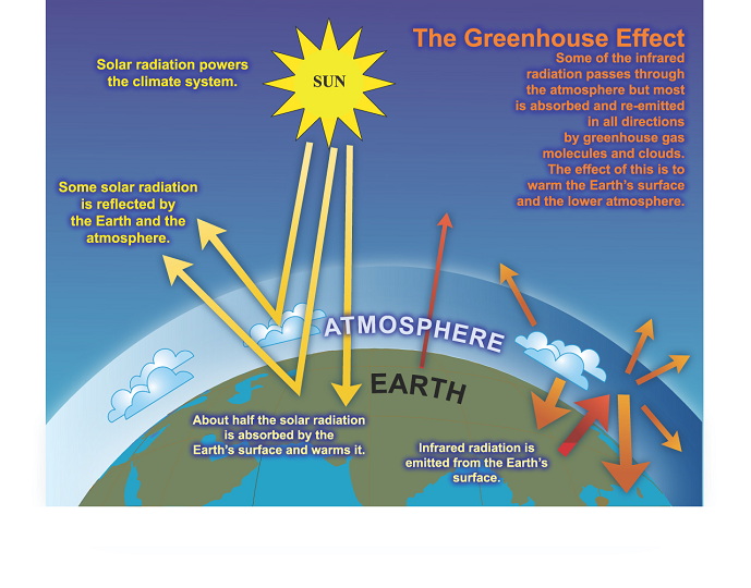 – les molécules de GES renvoient à leur tour vers la terre et l’espace leur propre rayonnement infrarouge, sans atténuation.