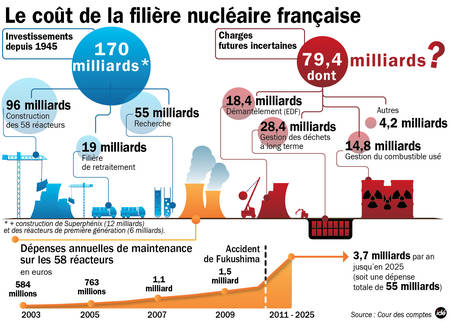 Jean-Marc Miraucourt, directeur de l’ingénierie du parc nucléaire d’EDF, confiait ainsi à l’AFP début 2012 les propos suivants : « Pour pouvoir exploiter notre parc de 58 réacteurs jusqu’à 60 ans, nous avions quantifié les dépenses nécessaires à environ 40 milliards d’euros sur une trentaine d’années et nos premières estimations montrent qu’on devrait rester dans une fourchette de 40 à 50 milliards d’euros ».
